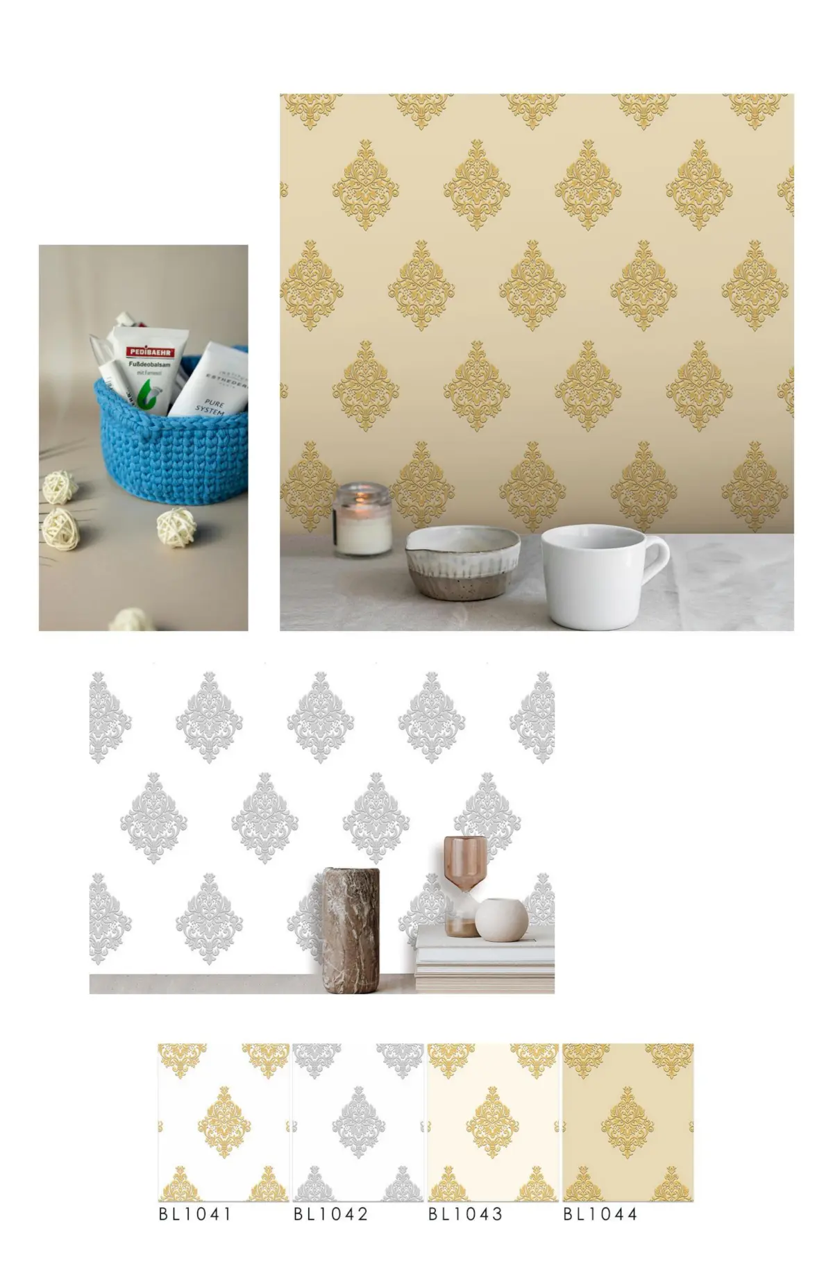 Our gold-beige damask Wallpaper are waterproof, stain-resistant, and flame retardant, making them suitable for a wide range of climates and conditions – especially in Southeast Asia, the Middle East, and tropical regions in Africa and South America.