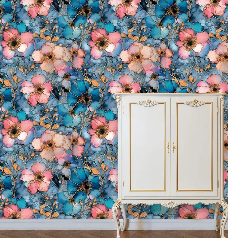 Bloom Style Wallpaper Vivid Pink And Blue Flowers BL1135