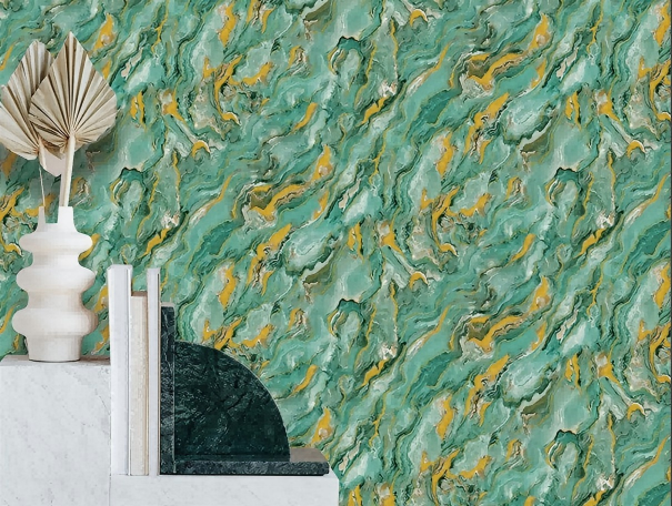 Blue-Green Marbled Wallpaper upgrade your space with our premium Shinning Gold Glitter 3D Wallpaper crafted from PVC vinyl to ensure durability and elegance. This wallpaper is ideal for residential and commercial applications, offering an easy-to-install and low-maintenance solution for interior design.