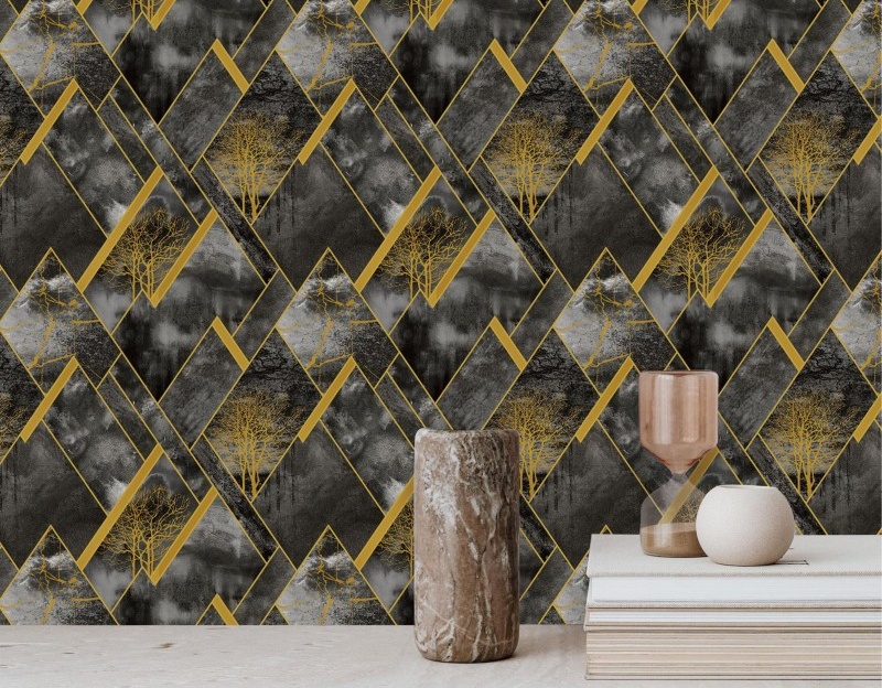 Be the first to review “Geometric 3D Wallpaper Black Base With Gold Lines And Tree Motifs MA1134” Cancel reply