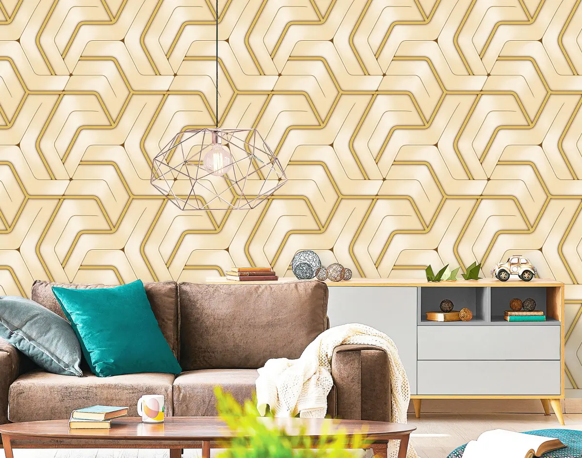 Extraordinary Geometric Wallpaper upgrade your space with our premium Shinning Gold Glitter 3D Wallpaper crafted from PVC vinyl to ensure durability and elegance. This wallpaper is ideal for residential and commercial applications, offering an easy-to-install and low-maintenance solution for interior design.