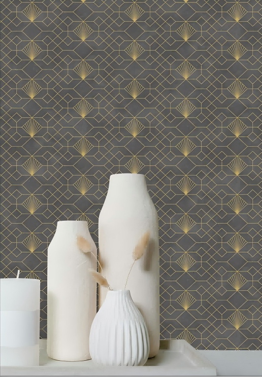 Geometric Fan Wallpaper upgrade your space with our premium Shinning Gold Glitter 3D Wallpaper crafted from PVC vinyl to ensure durability and elegance. This wallpaper is ideal for residential and commercial applications, offering an easy-to-install and low-maintenance solution for interior design.