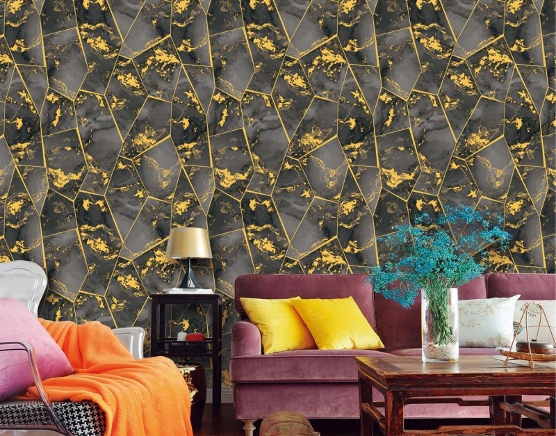 Geometric Gold Wallpaper  upgrade your space with our premium Shinning Gold Glitter 3D Wallpaper crafted from PVC vinyl to ensure durability and elegance. This wallpaper is ideal for residential and commercial applications, offering an easy-to-install and low-maintenance solution for interior design.