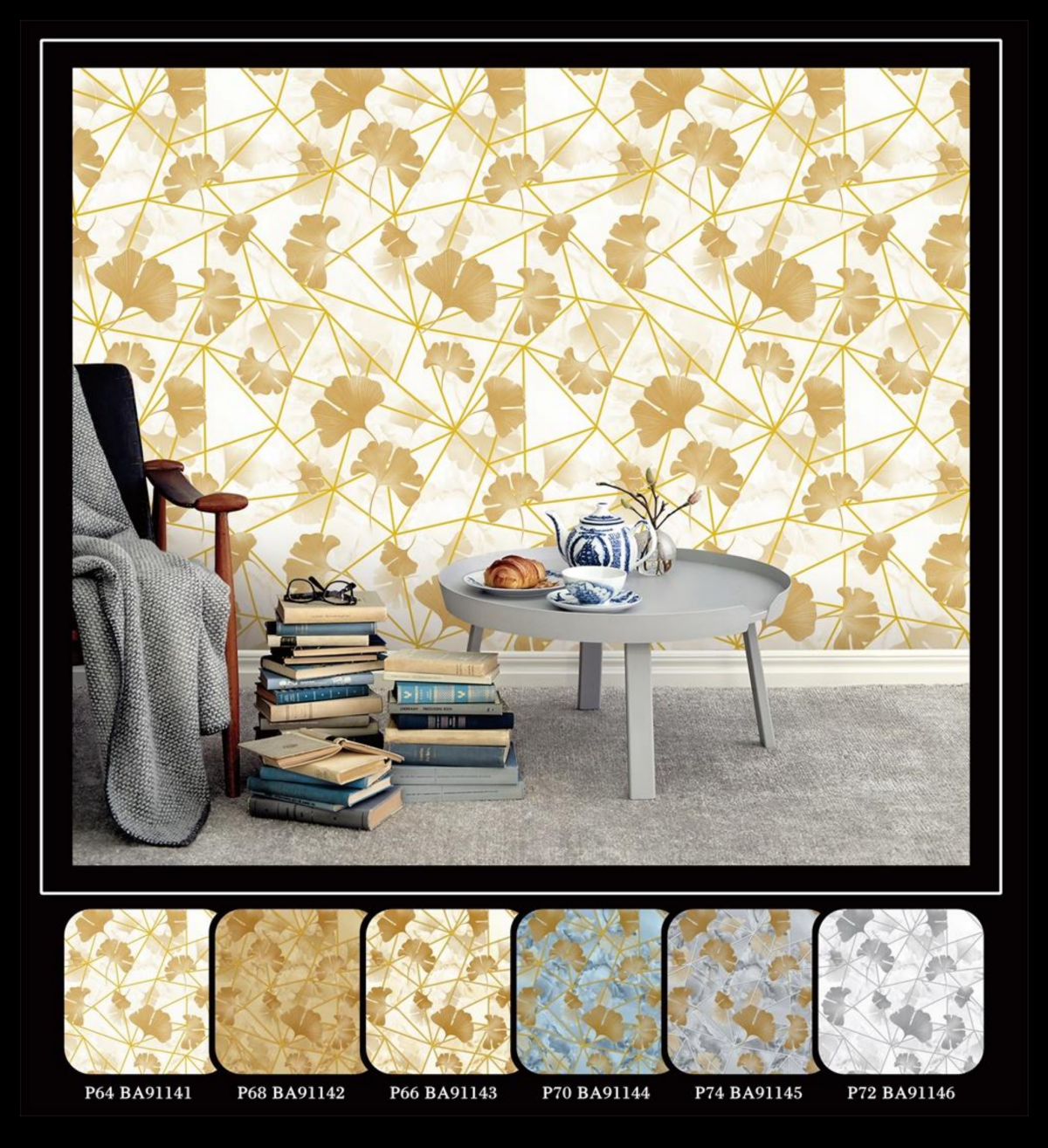 Geometry Wallpaper Room Decor With Apricot Leaves BA91143