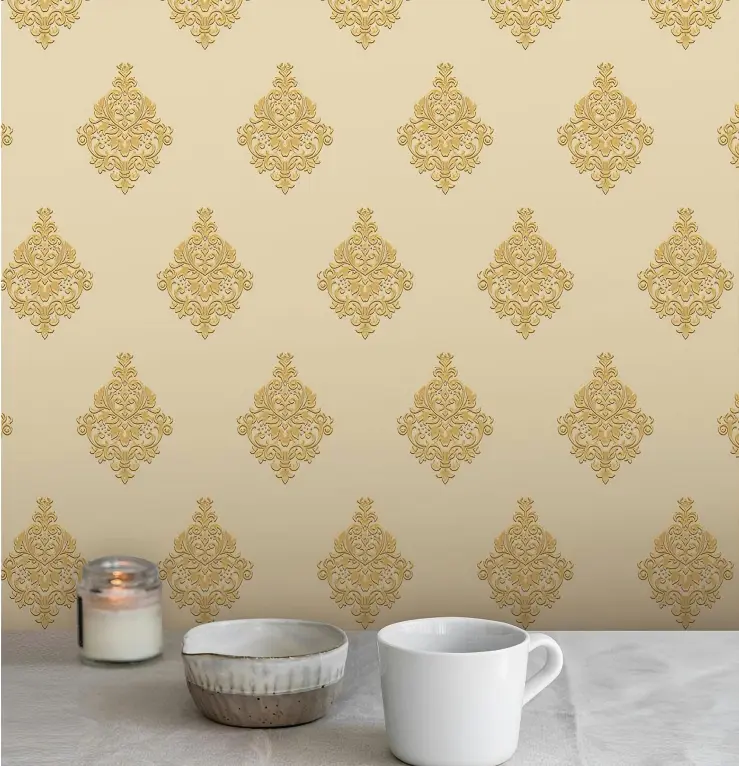 Our gold-beige damask Wallpaper are waterproof, stain-resistant, and flame retardant, making them suitable for a wide range of climates and conditions – especially in Southeast Asia, the Middle East, and tropical regions in Africa and South America.